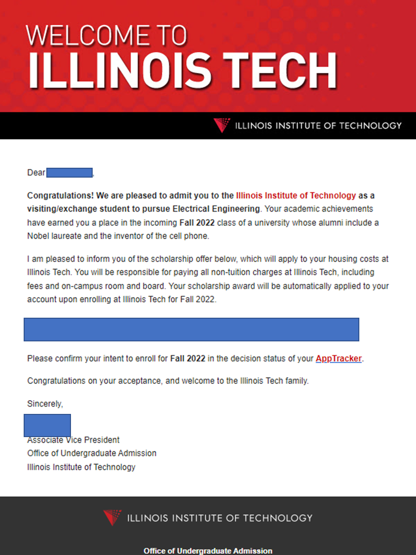 이렇게 교환 학생 입학 허가 이메일이 왔습니다.