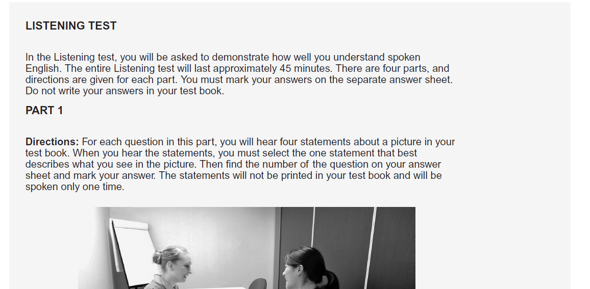 목차 1. TOEIC 시작하기 2. 시험 기본 정보 3. 시험당일 준비 사항 및 성적표 1. 시험장 입실 시험장은 오전인 경우 9시 20분까지 입실해야 합니다. 오후인 경우 2시 20분까지 입실해야 합니다. 2. 오리엔테이션 9시 30분에 시험에 대한 오리엔테이션을 간단히 합니다. 3. 스피커 테스트 9시 45분에 리스닝 잘 들리는지 확인합니다. 4. 신분증 검사 9시 40분에 신분증 검사합니다. 5. 시험 시작 이제 시험 준비 되는대로 시험을 시작합니다. 제가 최근에 보았을때 10시 09분에 시험을 보았습니다. 본 사이트에서 샘플 문제를 풀어 볼 수 있습니다. https://exam.toeic.co.kr/content/TOE/sampleLc1.php TOEIC® 공식 사이트 전 세계 160개 이상 국가..