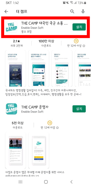 위의 사진과 같이 playstore에서 "더 캠프"라고 검색을 한다.