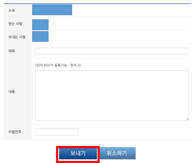 편지작성을 완료하면 보내기를 누르면 된다.