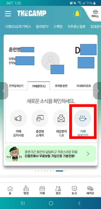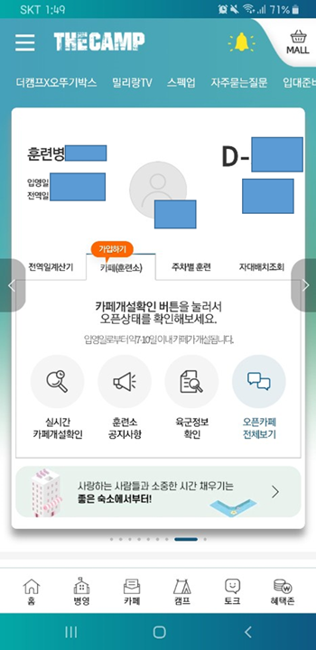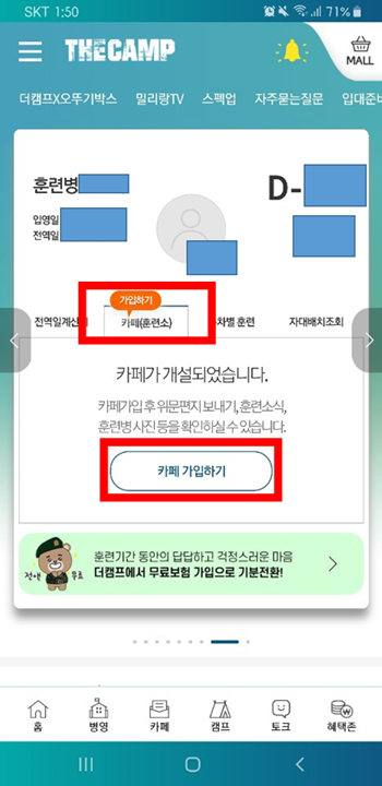 *주의, 카페가 개설되지 않아 가입이 안될 수도 있다. 이는 입대일을 기준으로 7일~10일 정도 지나서 개설됨으로, 입대일을 확인 후 7일~10일 기다리면 카페가 개설되어 가입이 가능해진다.