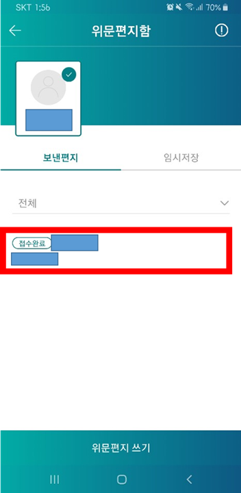 위와 같이 "접수완료" 가뜨면 성공적으로 편지를 작성한 것이다.
