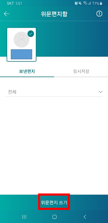 밑에 "위문편지 쓰기"를 누른다.