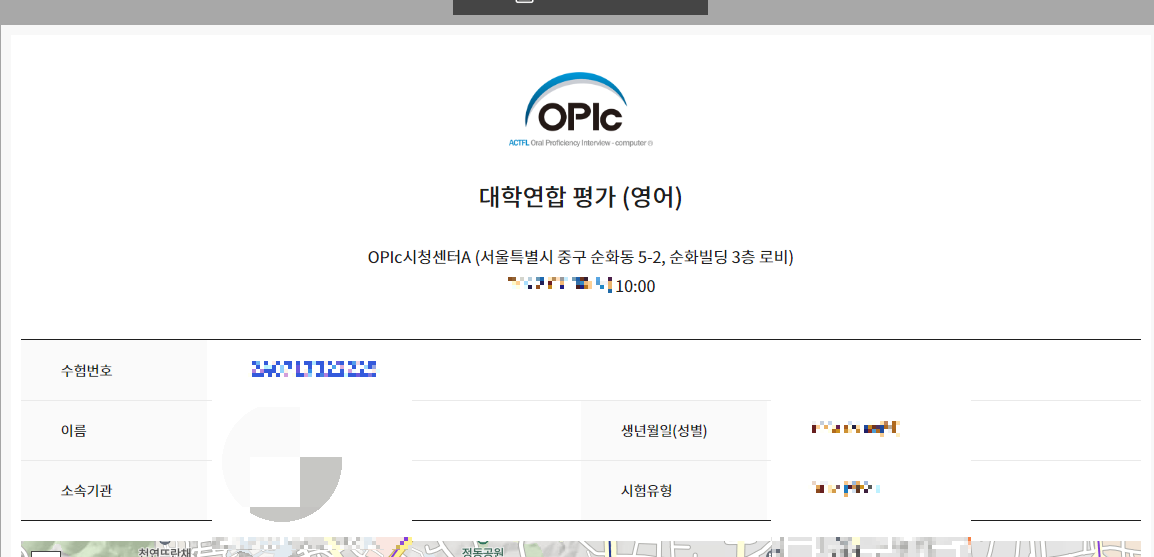 목차 1. OPIc 시작하기 2. 시험 진행방식 3. 시험 유형 4. 연습자료 5. 시험당일 준비 사항 및 성적표 시험 당일 준비 사항입니다. 1. 신분증 2. 재학증명서 (대학연합으로 시험을 신청 한경우) 3. 수험표 (없어도 시험 볼 수 있습니다.) 성적표는 주로 5~7일정도 걸린다고 합니다. 결과는 홈페이지를 통해서 출력이 가능합니다. https://m.opic.or.kr/opics/jsp/senior/receipt/aboutOpicMobile.jsp OPIc 무료 OPIc 과정 학습은 크레듀 앱에서 가능합니다. 크레듀 앱 설치 전이시면 설치하기를 눌러 진행해 주세요. * 크레듀는 세계 최고의 외국어 교육/평가 전문기관인 ACTFL의 평가를 주관하는 Total HR m.opic.or.kr 저는 시청..